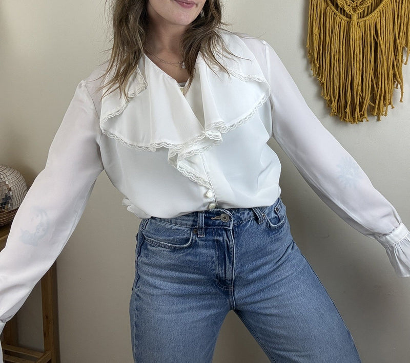 Vintage Size L 12-14 White Romantic Ruffle Blouse Alba Fornari
