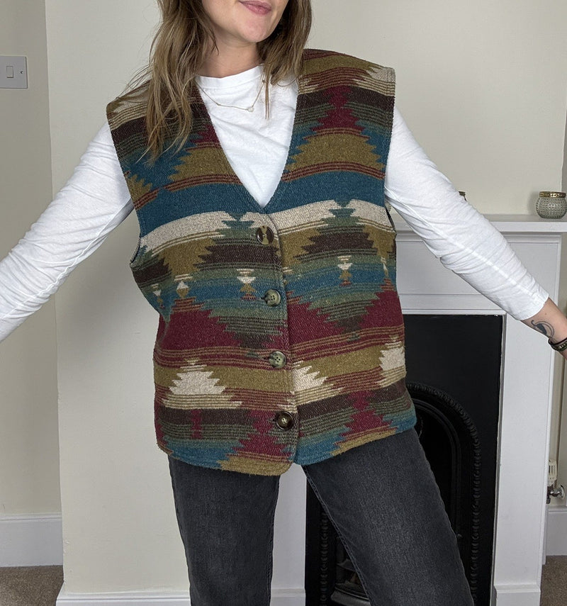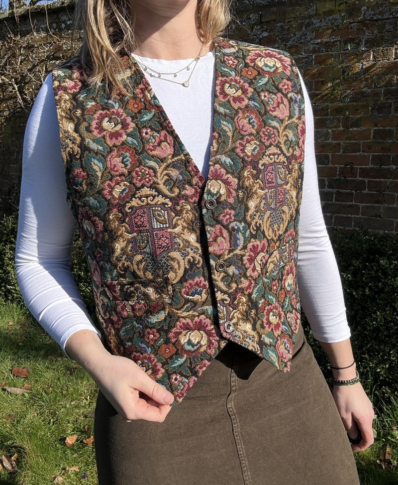 Vintage Size M 10-12 Boho Cottage Floral Tapestry Waistcoat