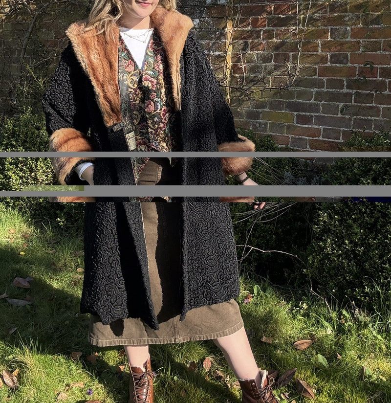 Vintage French 70s Size M 10-14 Black Heavyweight Fur Trim Coat Soldel Model