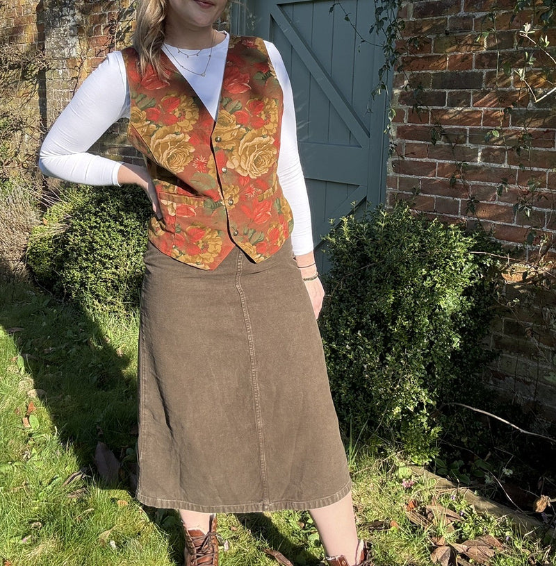 Vintage Size S 6-10 Earthy Romantic Satin Back Waistcoat Oxido