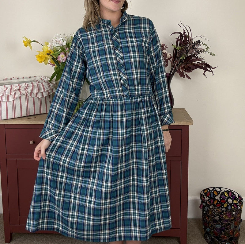 Vintage Size 14 Green Check Button Front Midi Dress St Michael