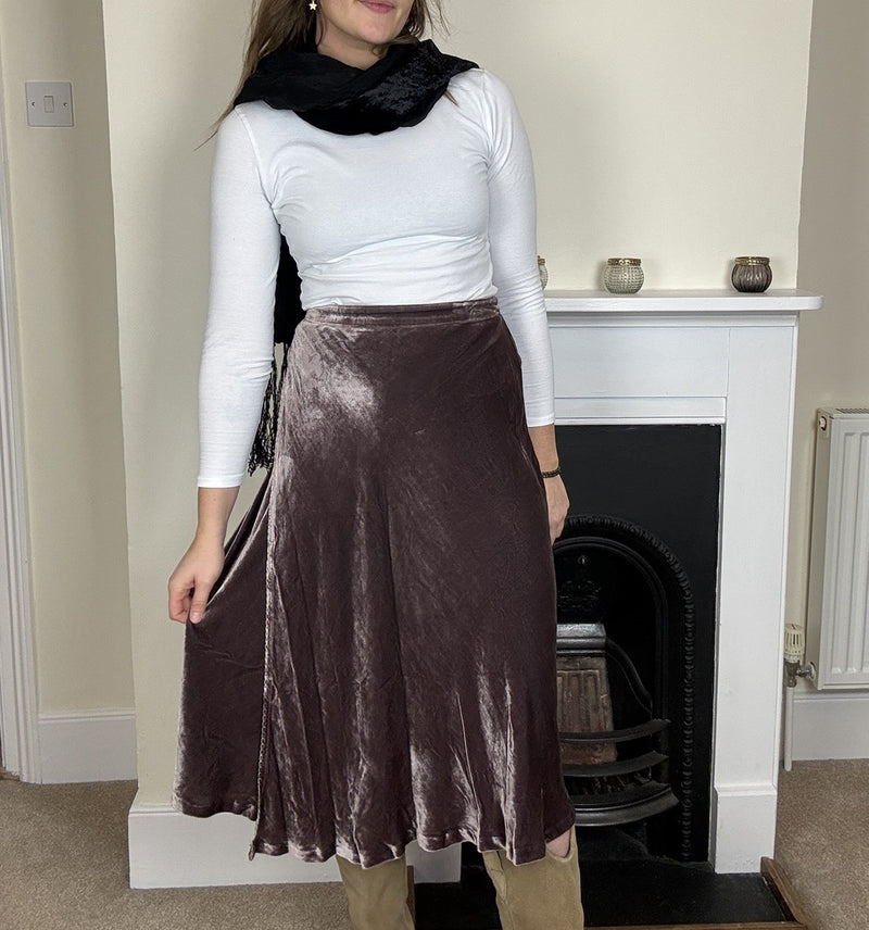 Vintage Size L 14-16 Dusky Purple Silk Blend Velvet Midi Skirt Jigsaw