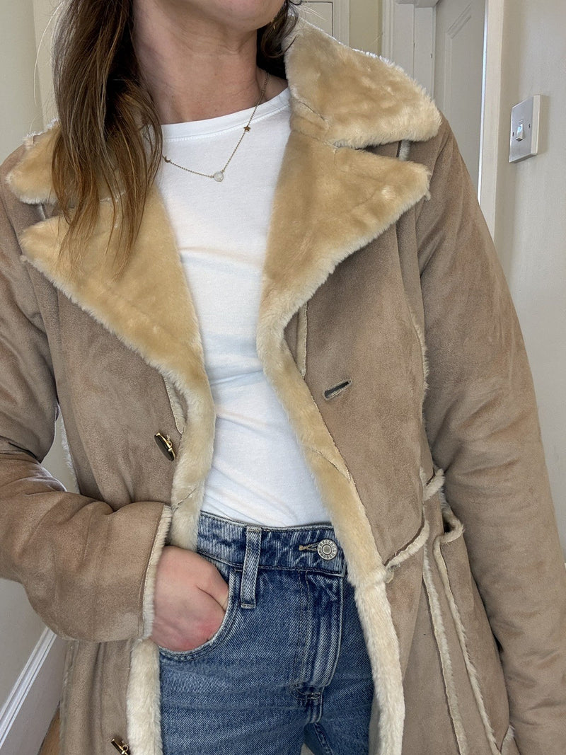 Vintage Size M 10-12 Brown Boho Whimsical Floral Overcoat Duster Coat Wallis