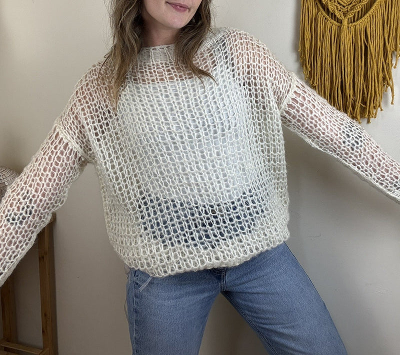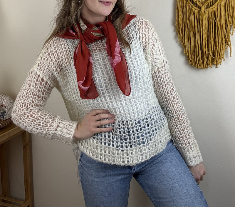 Vintage Handmade Free Size 6-18 Cream Loose Weave Mohair Knit Jumper
