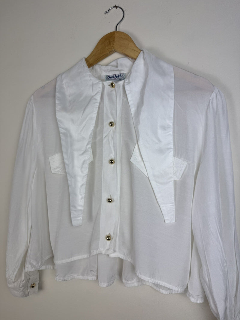 Vintage Size S 6-10 White Oversized Pointy Collar Blouse Saint Andre