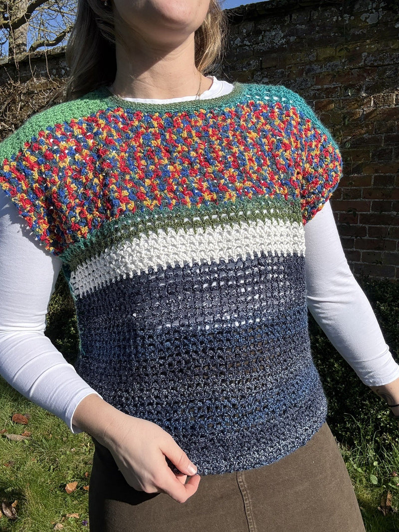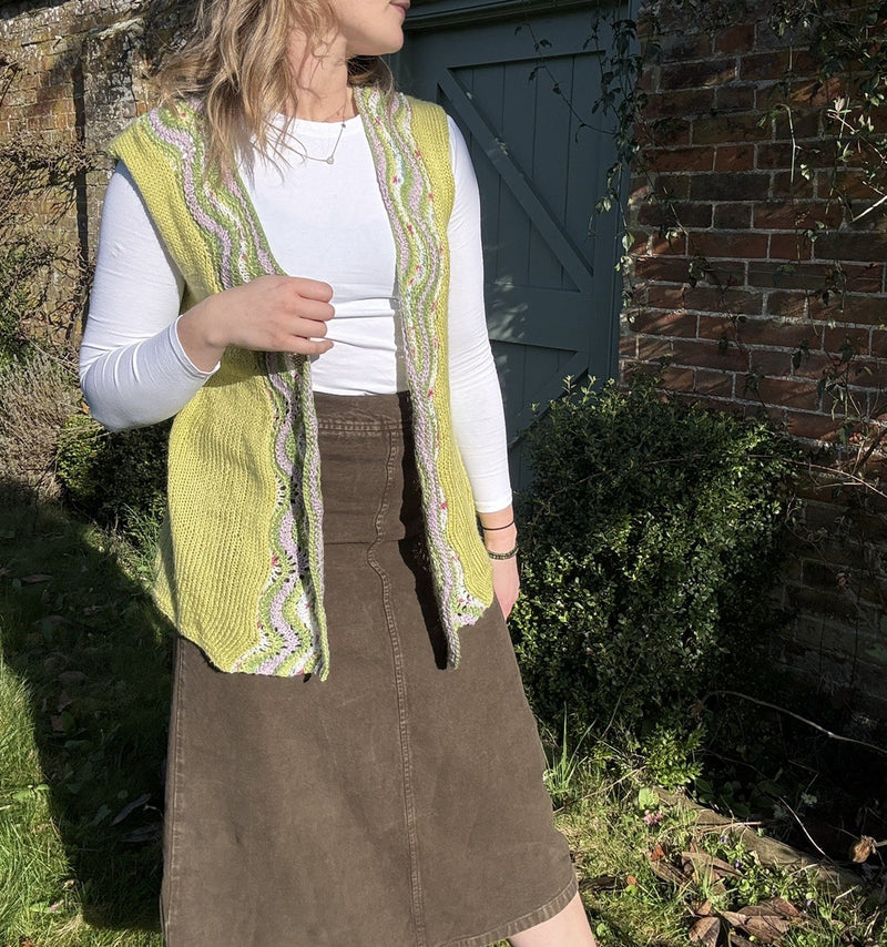 Vintage Size 2XL 14-20 Handmade Green Boho Open Knit Vest Waistcoat
