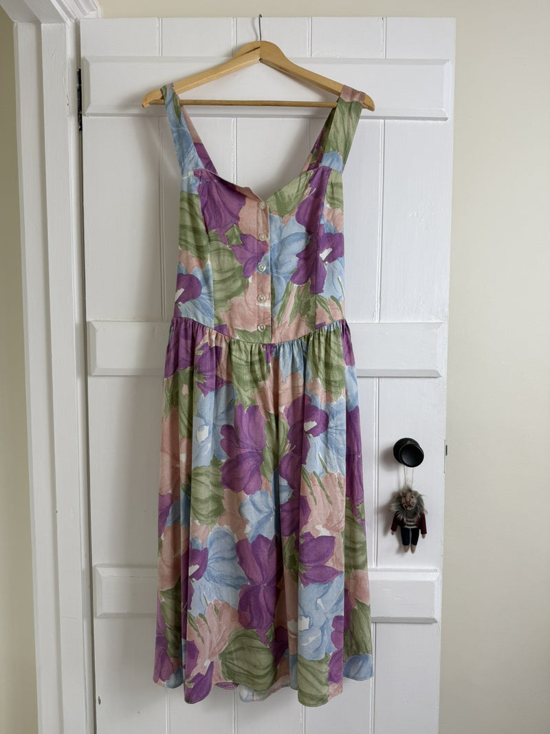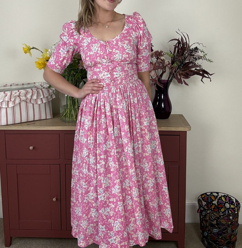 Vintage Size 8 Pink Romantic Floral Cotton Laura Ashley Midi Prairie Dress