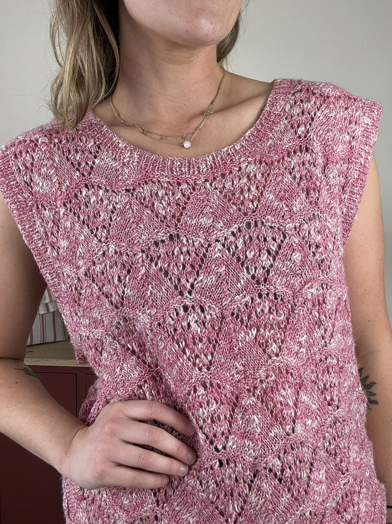 Vintage Size 2XL 16-22 Pink Pointelle Knit Vest Tank Top