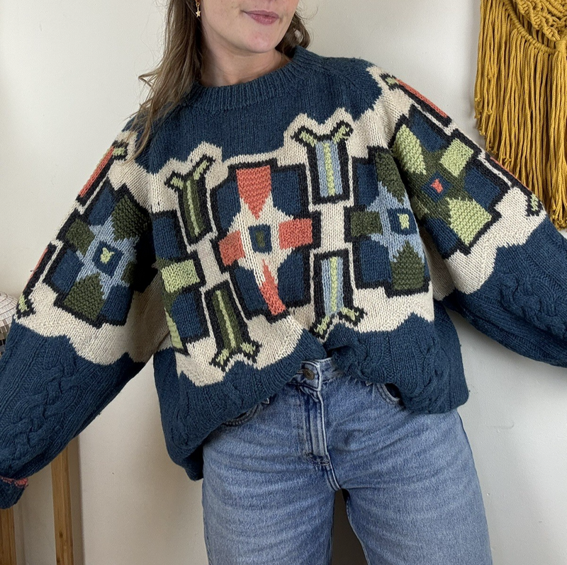 Vintage Size 3XL 18-24 Cream Oatmeal Boho Western Patterned Alpaca Knit Jumper