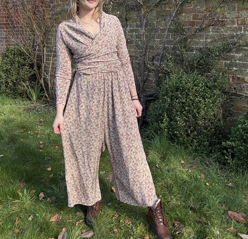 Vintage Size S 6-10 Boho Cottage Floral Two Piece Wrap Top Trouser Set Hobbs