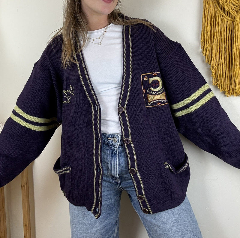 Vintage Free Size 6-16 Burgundy Grandad Slouchy Knit Cardigan Poker