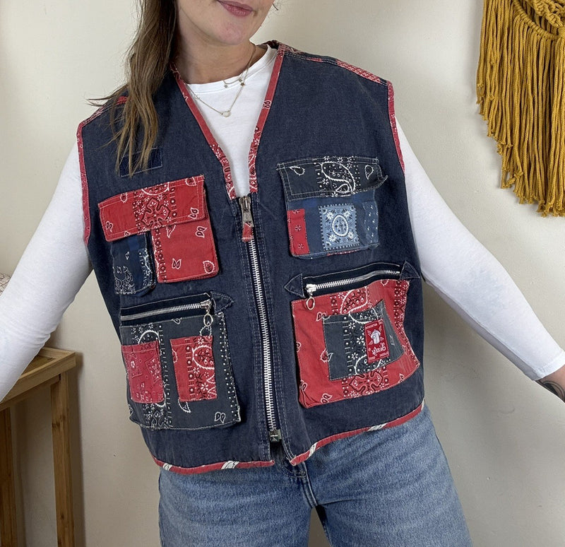 Vintage Size 3XL 18-22 Multicolour Patchwork Reversible Waistcoat
