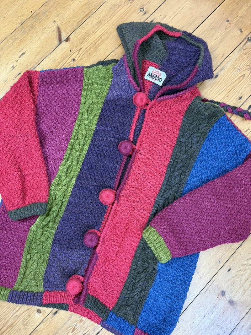 Vintage 90s Size 2XL 16-22 Mutlicolour Rainbow Chunky Knit Wool Amano Cardigan