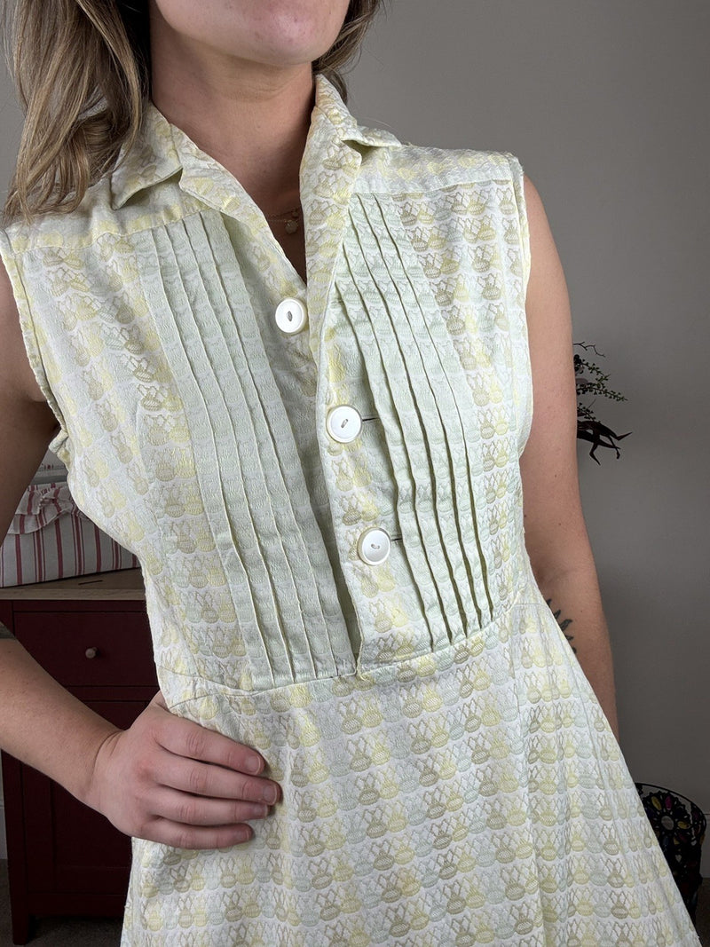 Vintage Size XS 6-8 Green Apple Pattern Button Front Sleeveless Summer Top