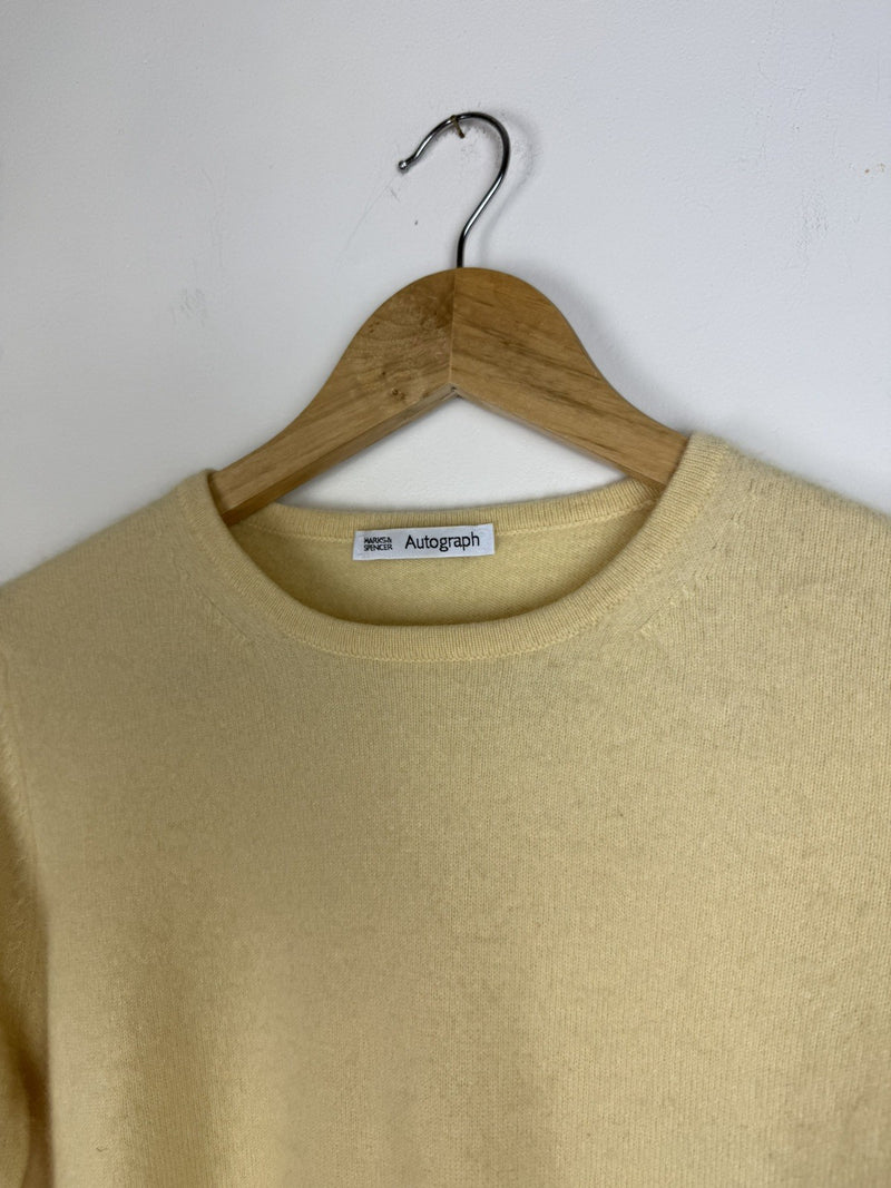 Size M 8-12 Yellow 100% Cashmere Knit Crew Neck Jumper Autograph M&S