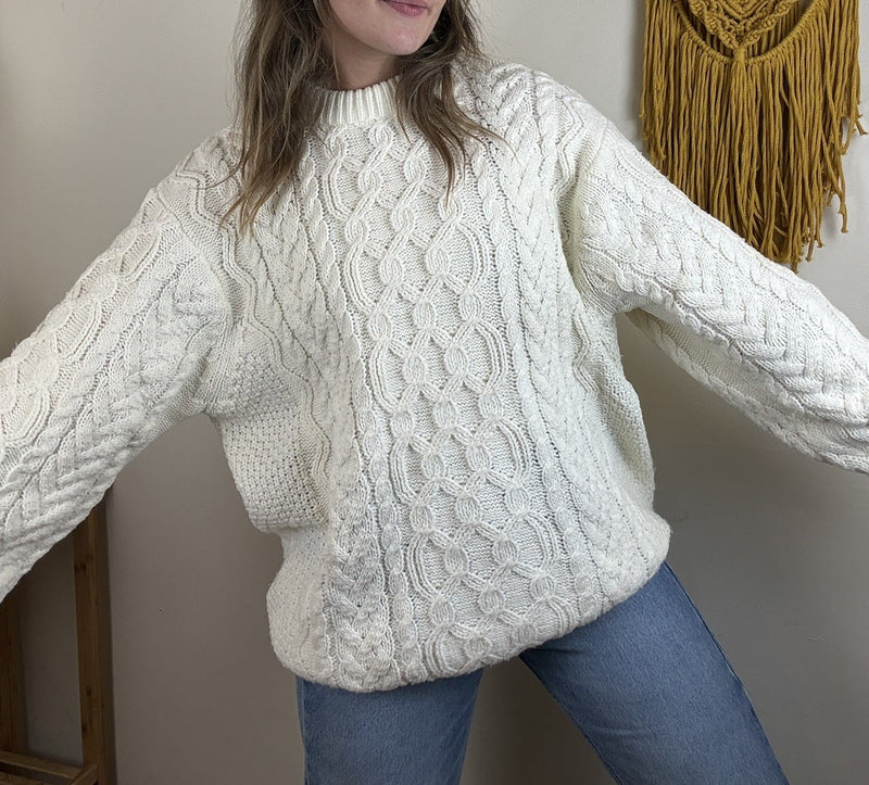 Vintage Size XL 14-20 Cream White Cable Knit Jumper Classic