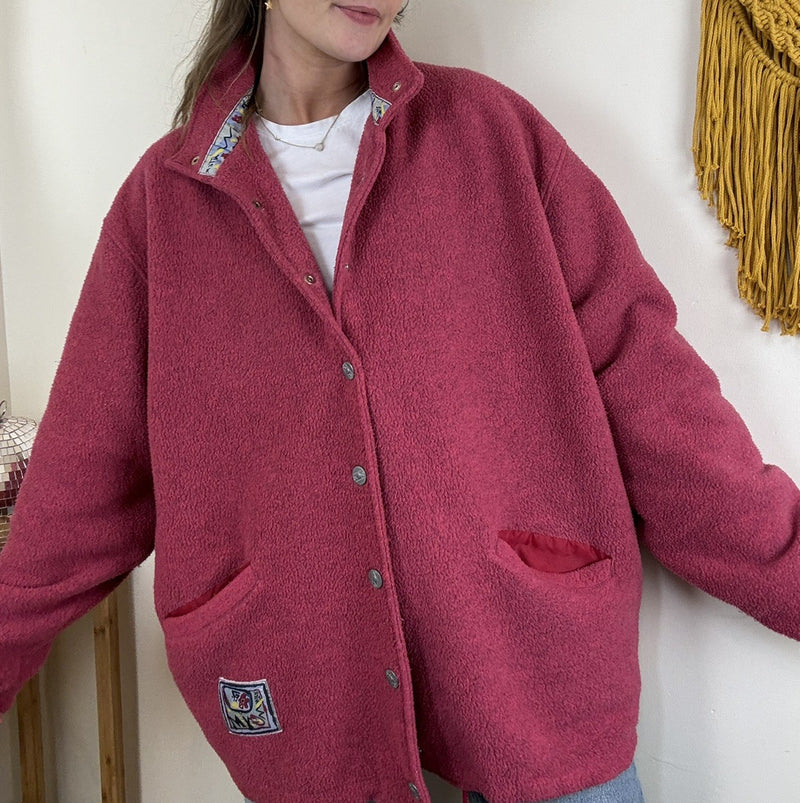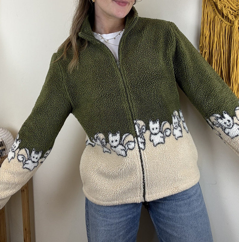 Vintage Size 3XL 14-20 Funky Patterned Full Zip Sherpa Fleece Blue Ocean