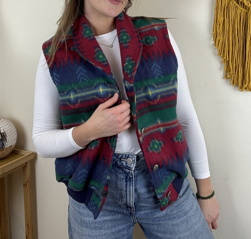 Vintage Size 2XL 16-20 Multicolour Boho Patterned Knit Waistcoat