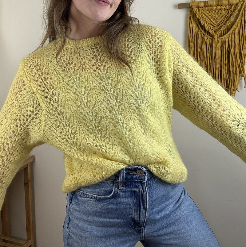 Vintage Handmade Size M 8-14 Yellow Mohair Fine Knit Jumper