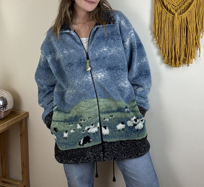 Vintage Size 2XL 12-18 Blue Chunky Sherpa Sheep Collie Fleece