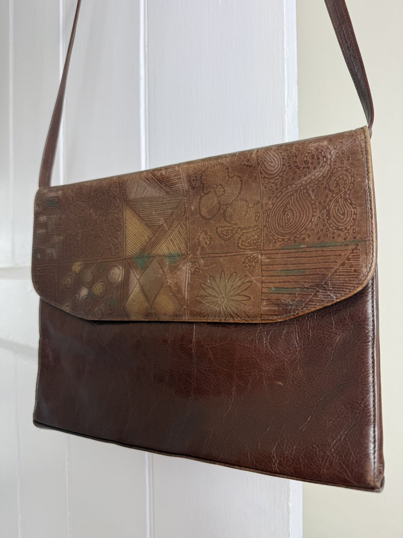 Vintage 80s Brown Genuine Leather Shoulder Bag Crossbody Satchel