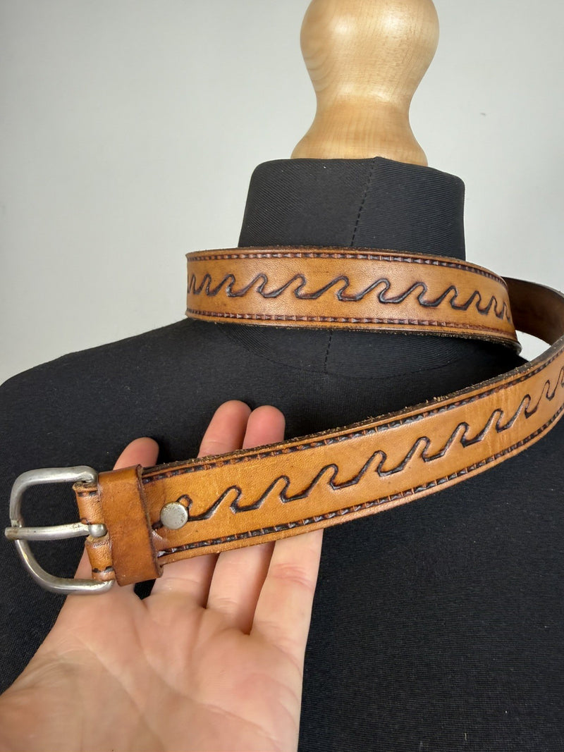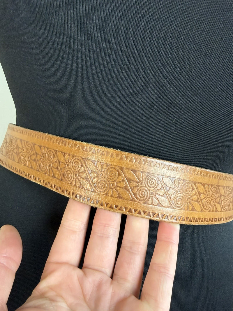 Vintage Size M 10-14 W31-36” Brown Genuine Leather Patterned Waist Belt