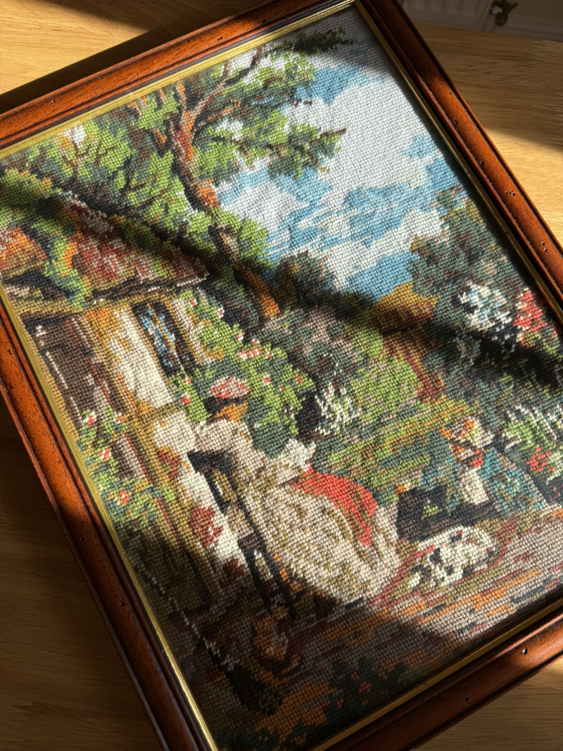 Vintage Framed Country Scene Cross Stitch Art Work