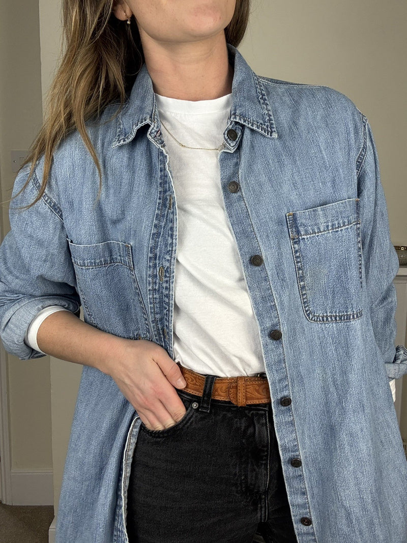 Vintage Size XL 8-18 90s Blue Denim Dad Shirt Casual Look