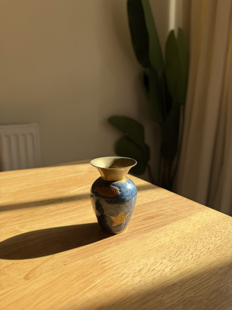 Vintage Small Miniature Brass Handpainted Sea Shell Vase