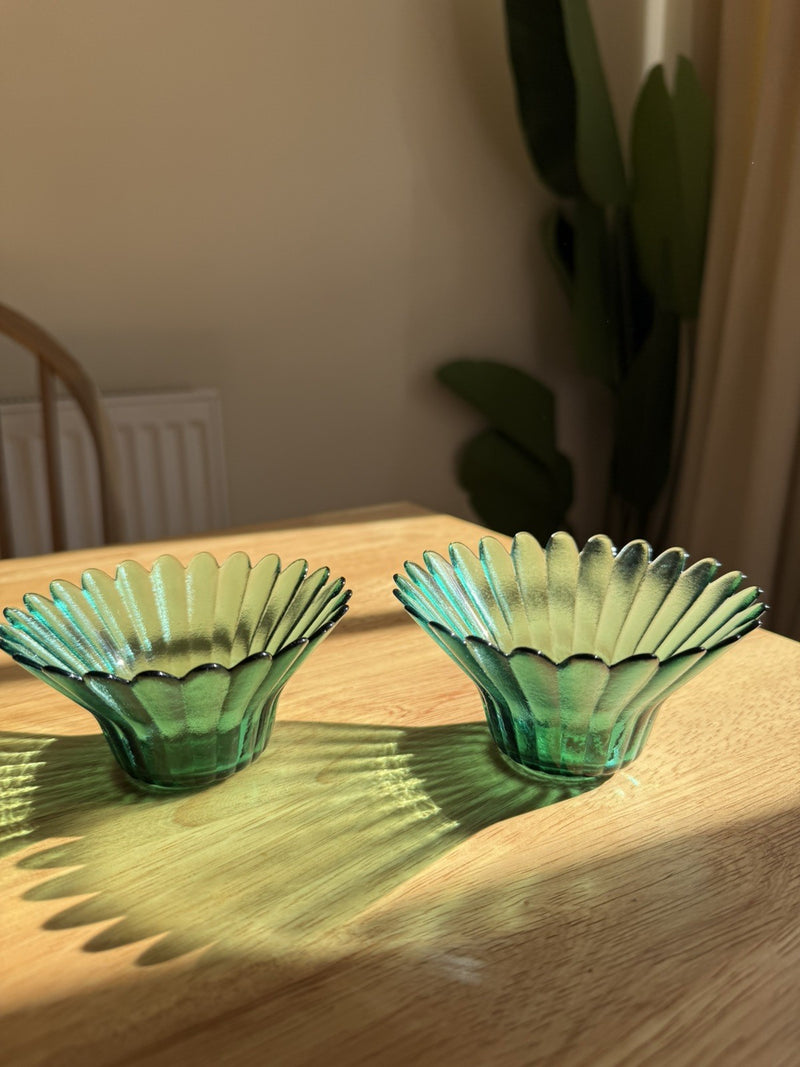 Vintage Pair of Green Glass Decorative Bowls