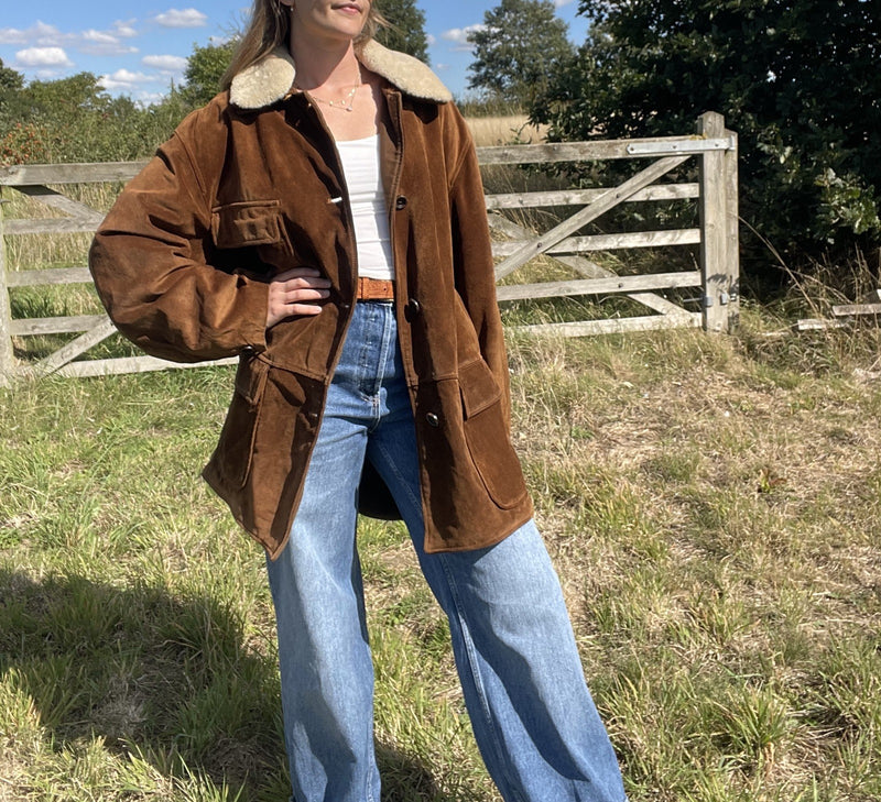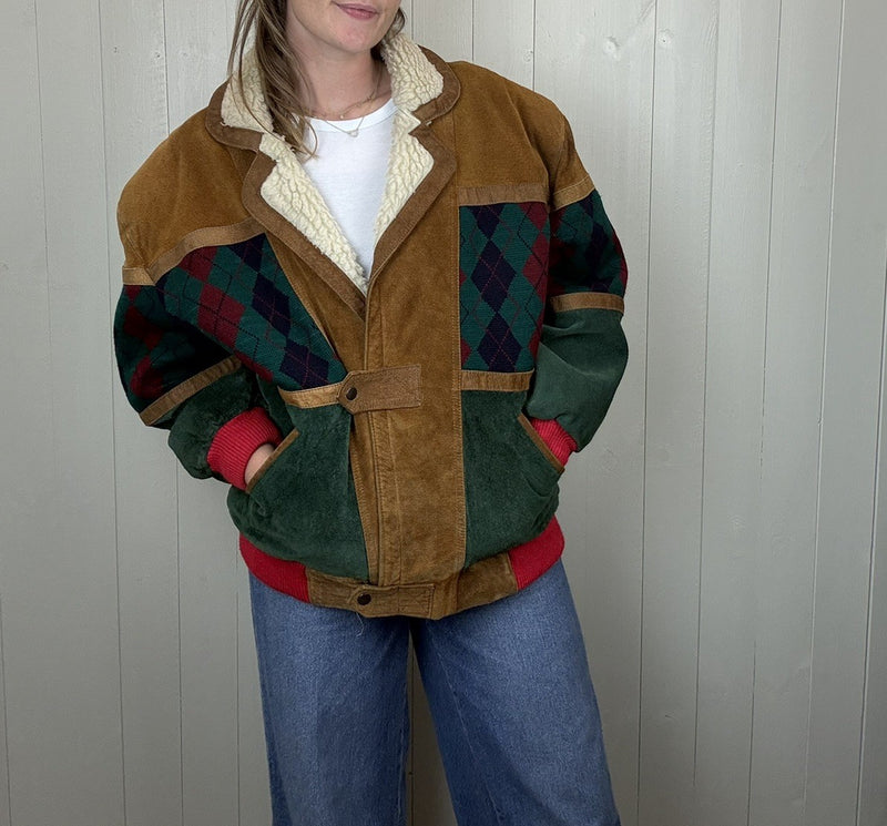 Vintage Size 2XL 14-18 Oversized Suede Sherpa Trucker Jacket