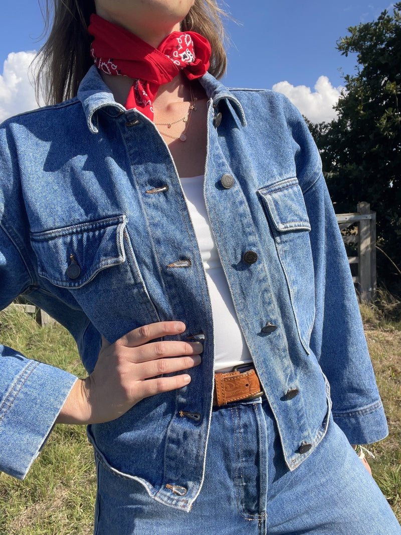 Vintage 90s Size XS 6 8 Blue Denim Cropped Jacket Benetton Type De Nimes