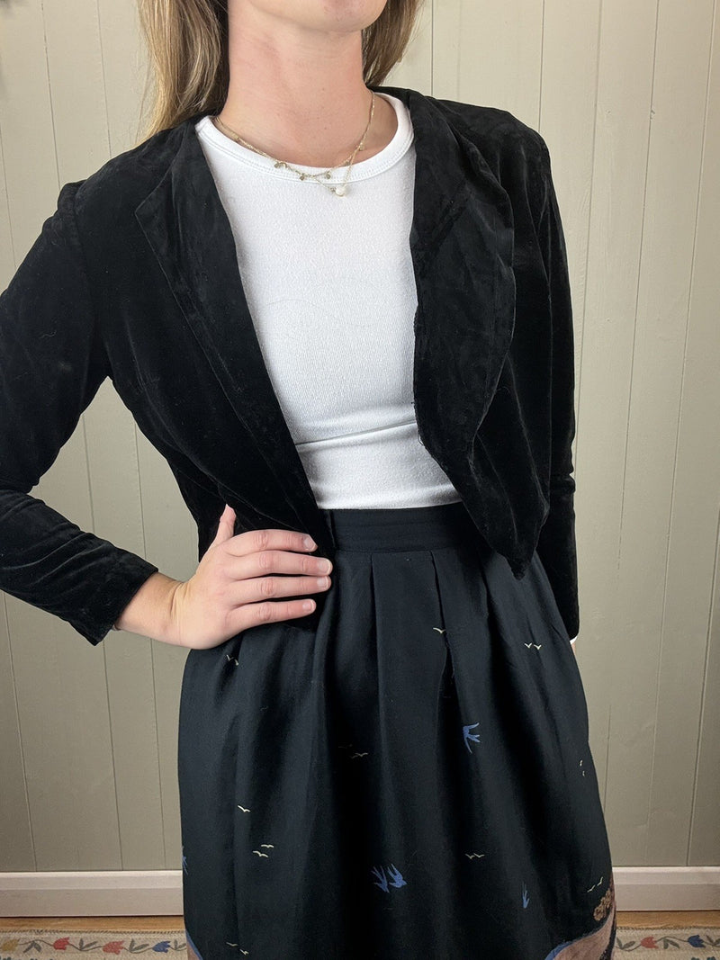 Vintage 70s Size XS 6-8 Black Velvet Bolero Cropped Jacket Highlight