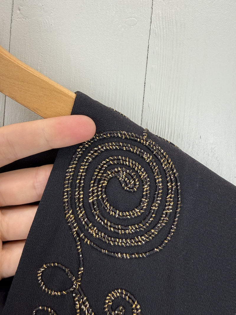 Vintage Size M 6-12 Black 100% Silk Beaded Festive Jacket Creative Creations
