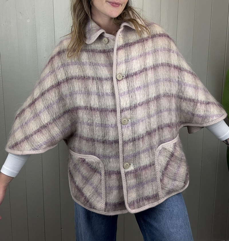 Vintage Free Size 6-14 Cream Purple Mohair Cape Jacket