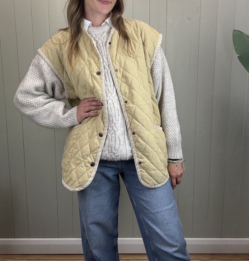 Vintage Size 3XL 16-20 Cream Quilted Gilet Waistcoat Pop 84
