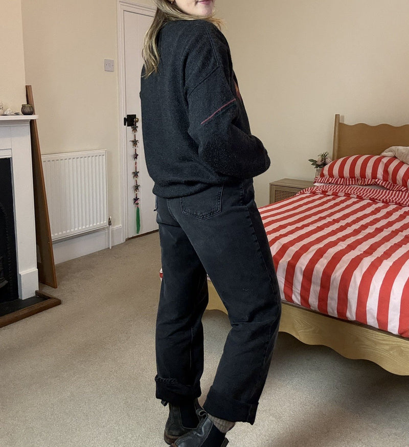 Vintage Size XL 12-18 Dark Grey Funky Patterned Knit Jumper Louise Estere