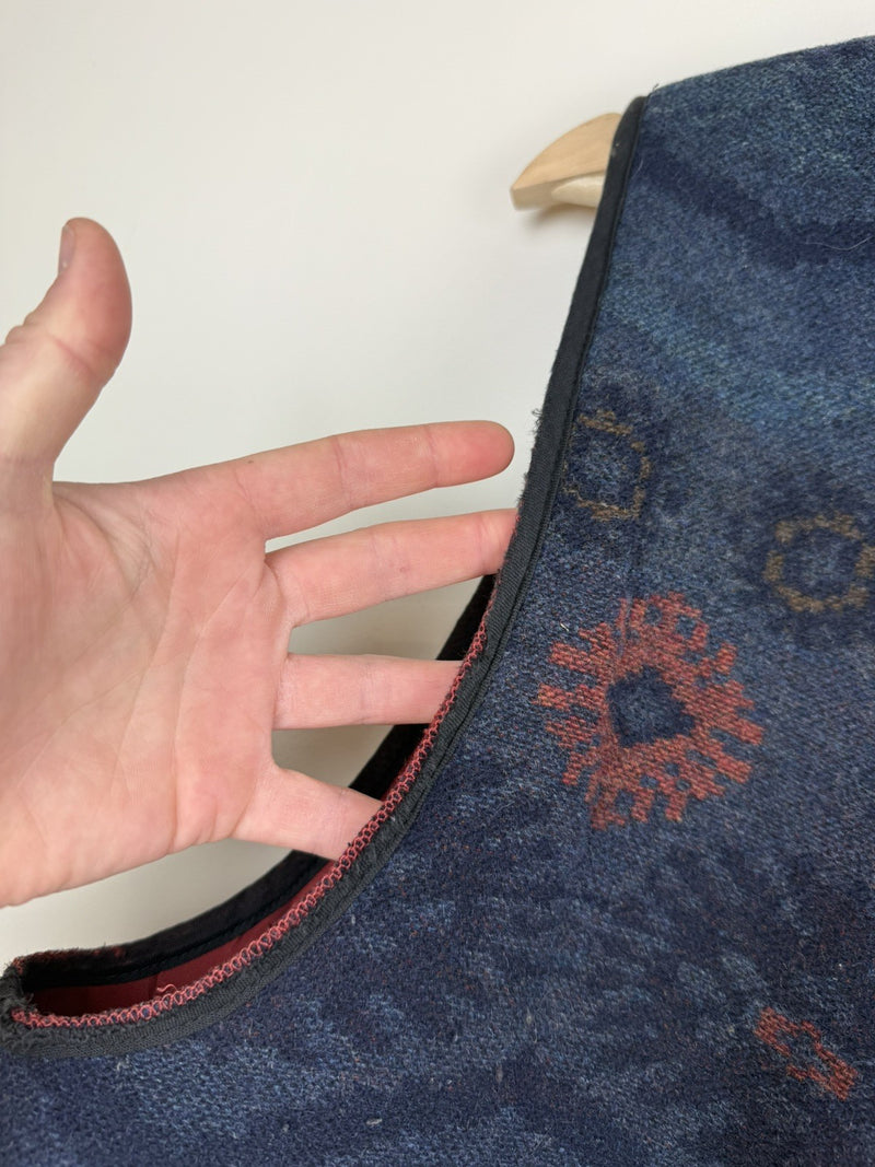 Vintage Size XL 14-18 Navy Boho Patterned Wool Blend Waistcoat Pionier