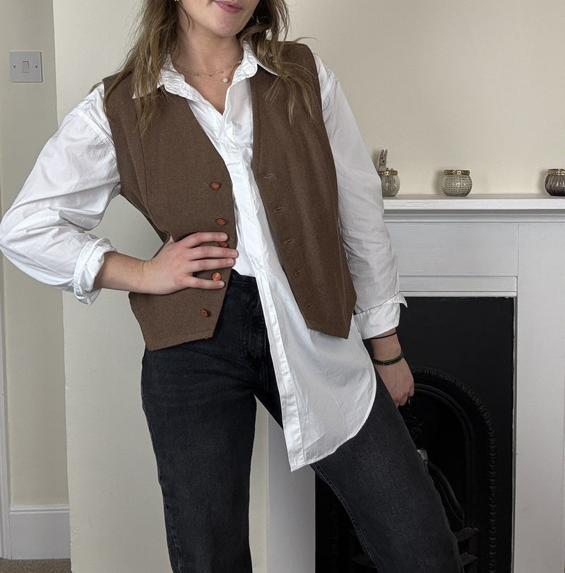 Vintage Size S 6-10 Brown Wool Tweed Button Front Waistcoat