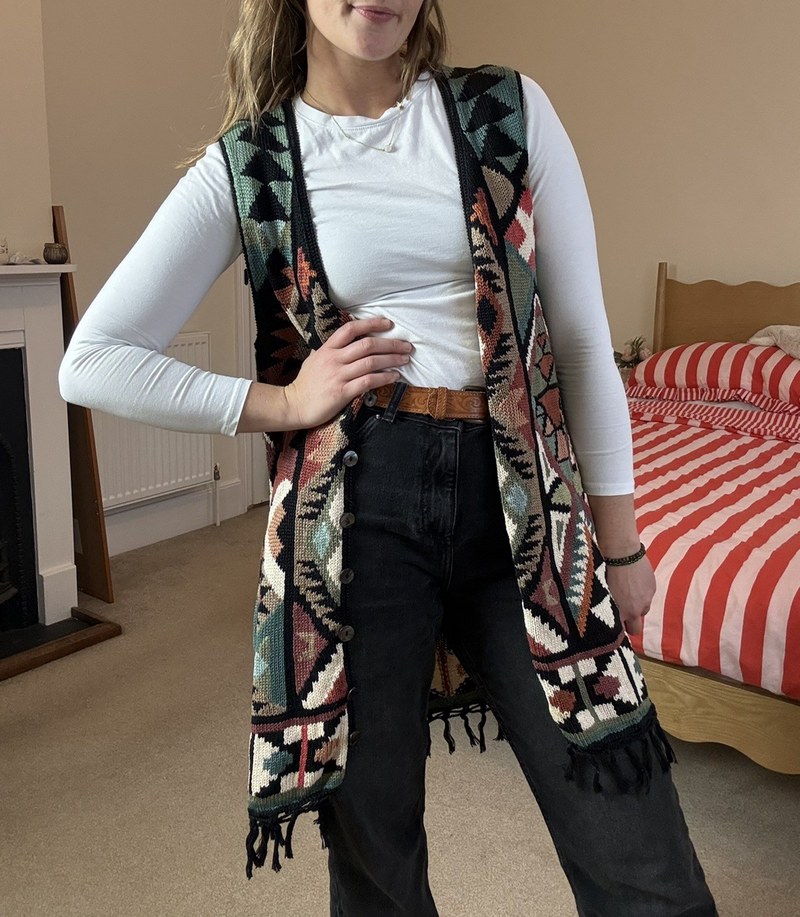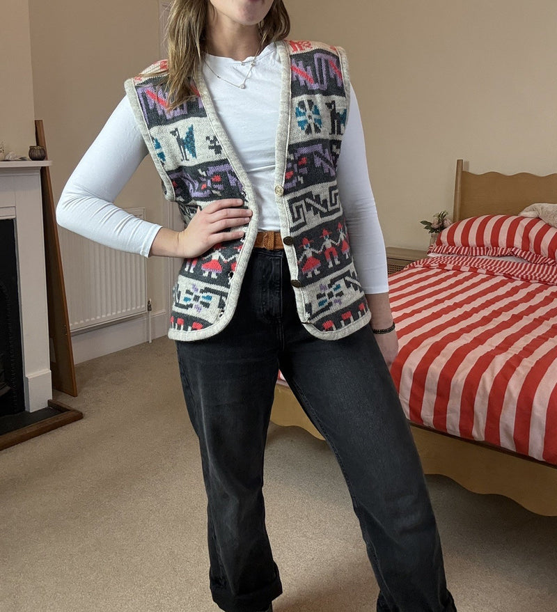 Vintage Size 2XL 16-20 Multicolour Boho Patterned Knit Waistcoat