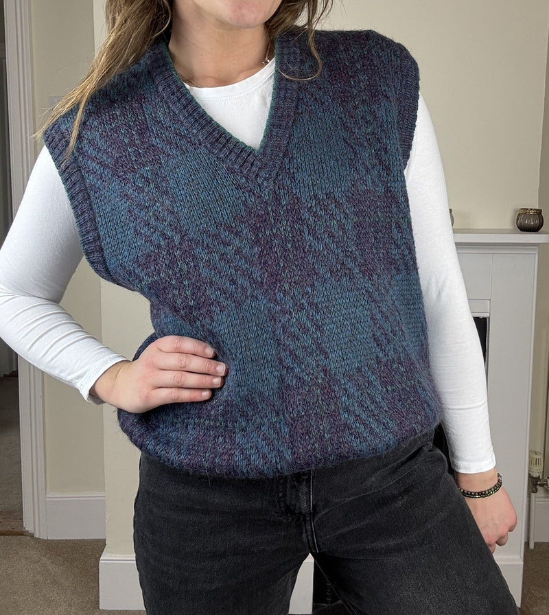 Vintage Size XL 12-16 Blue Check Mohair Wool Blend Knit Vest Tank Top