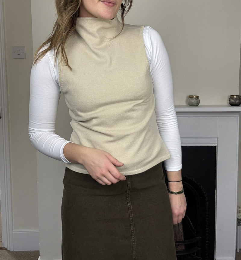 Vintage Size M 10-12 Cream/Beige High Neck Knit Tank Knit Vest Etam