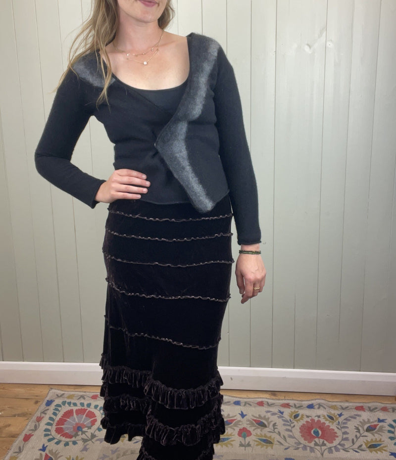 Vintage Size XS 6-8 Black Whimsical Witchy 100% Wool Cardigan Stile Benetton