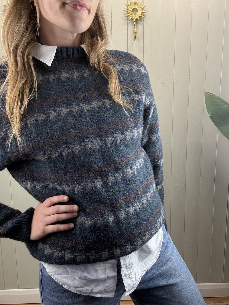 Vintage Size L 12-16 Navy Patterned Chunky Knit Boiled Wool Jumper Orvis