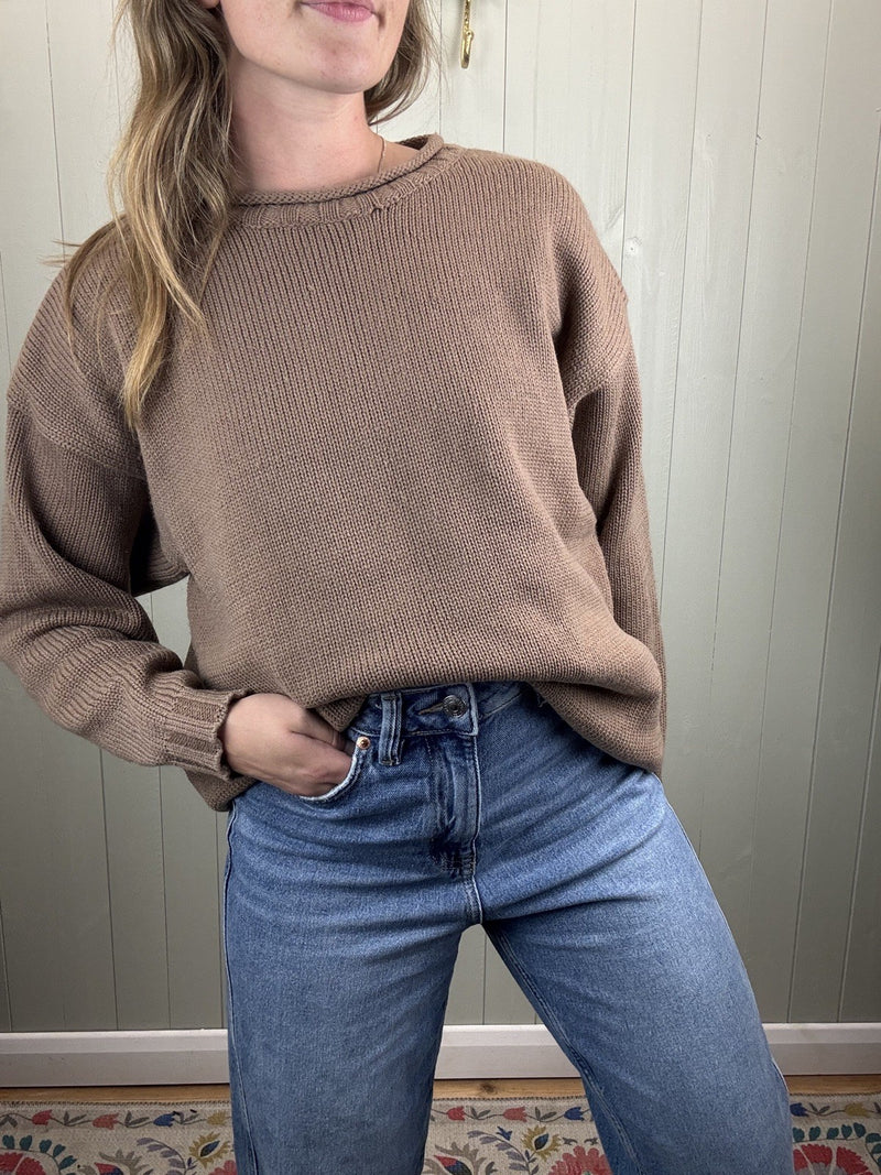 Vintage Size L 12-18 Brown Fisherman Style Knit Jumper Theme