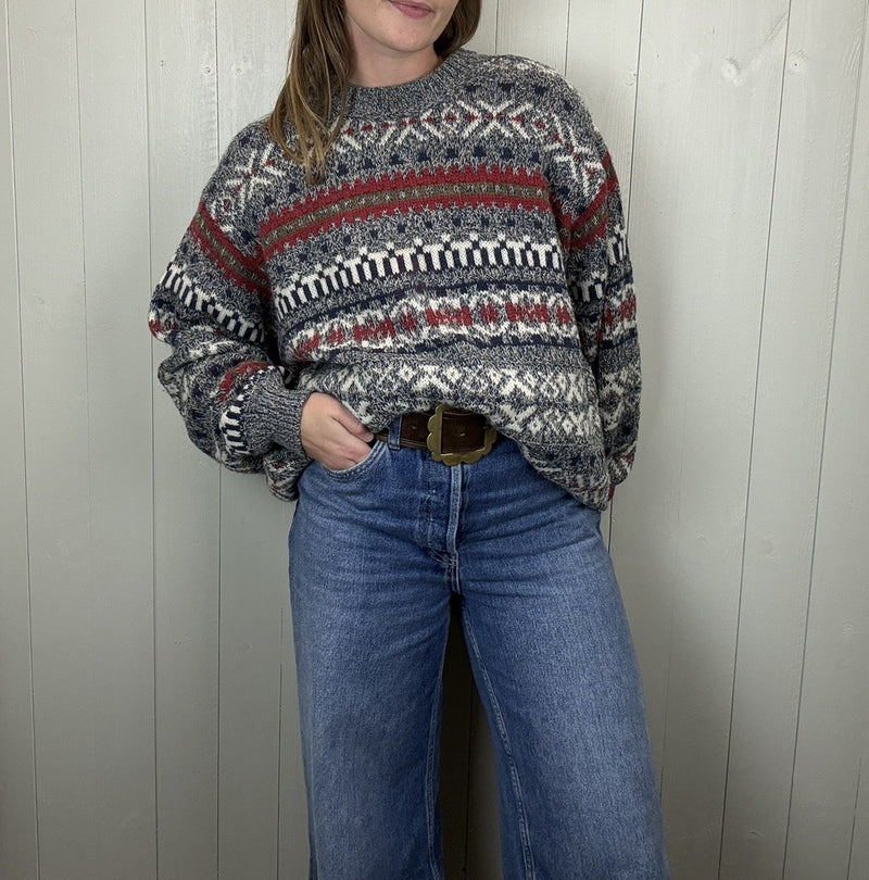 Vintage Size 3XL 16-22 Grey Patterned 100% Wool Knit Jumper Benetton