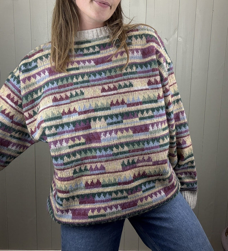 Vintage Size 3XL 18-24 Cream Oatmeal Boho Western Patterned Alpaca Knit Jumper
