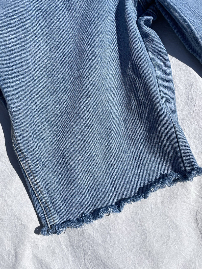 Vintage 90s Size XS 6-8 Blue Denim Dungaree Cut Off Shorts Louis