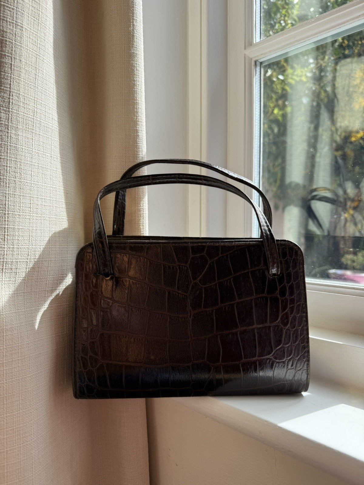 Super gorgeous vintage 50s brown genuine leather handbag. Incredible classic quality bag perfect for everyday or occasions! Inner pockets and lined.