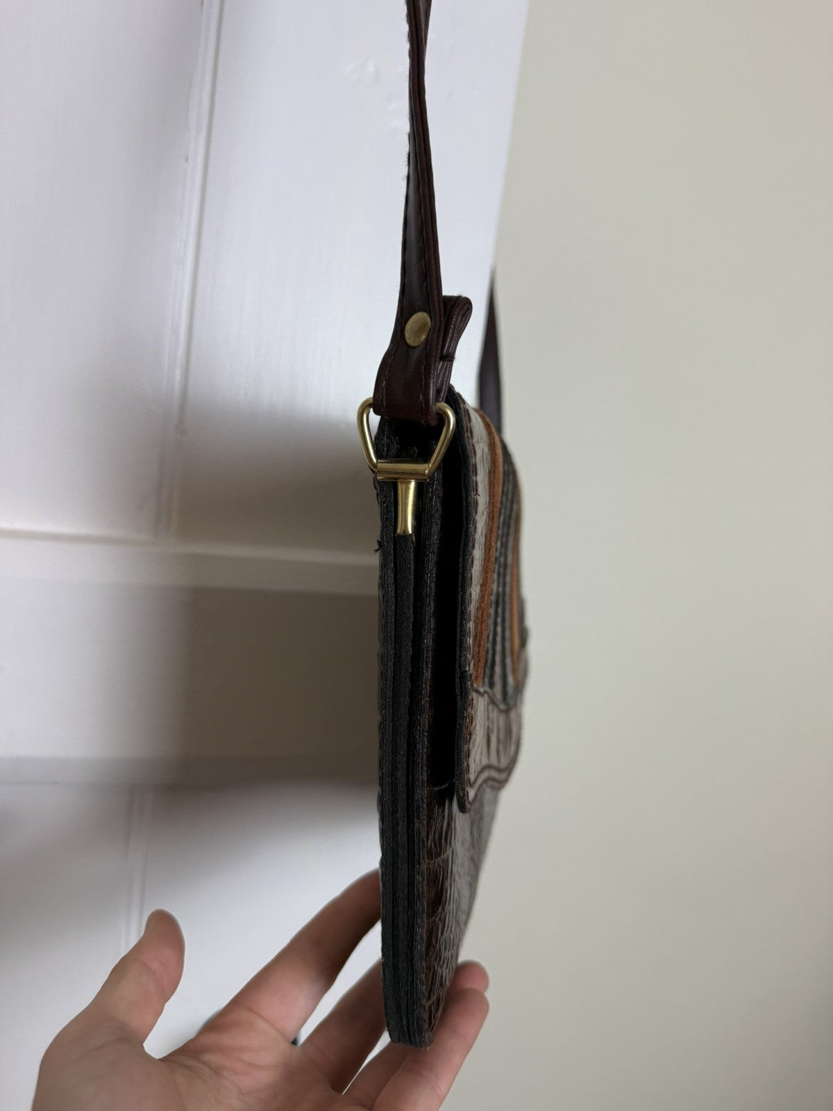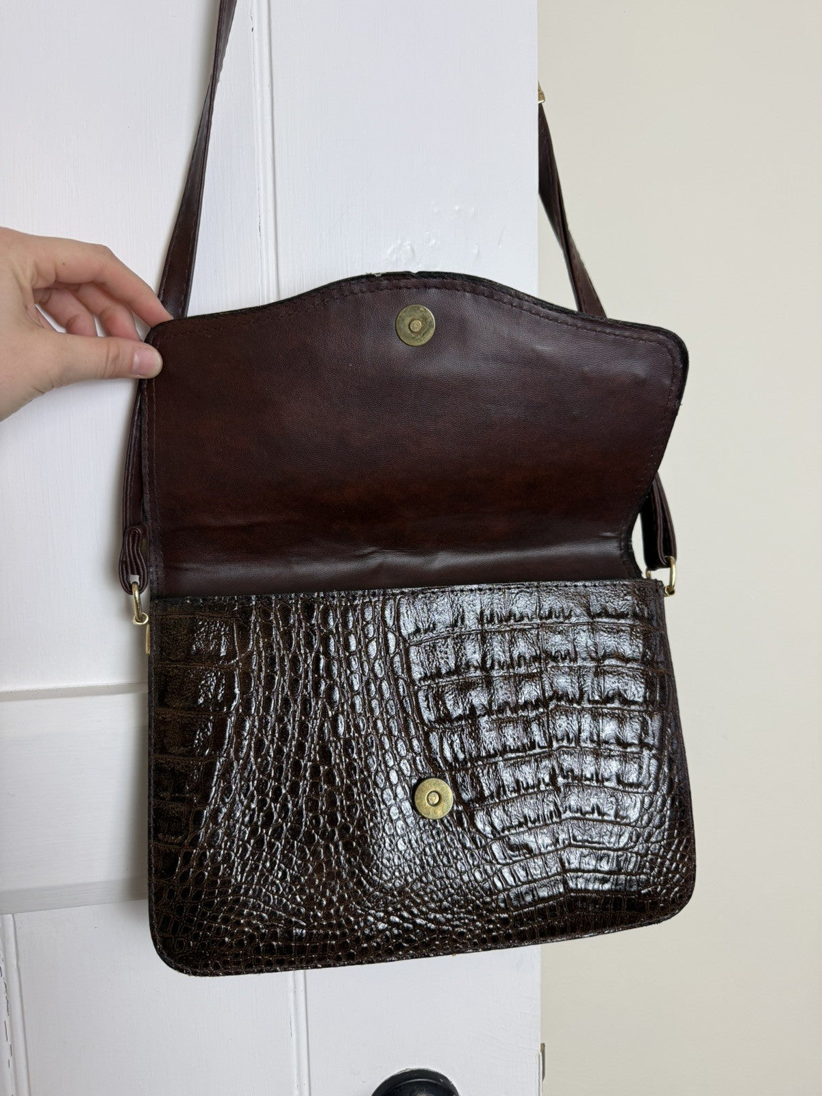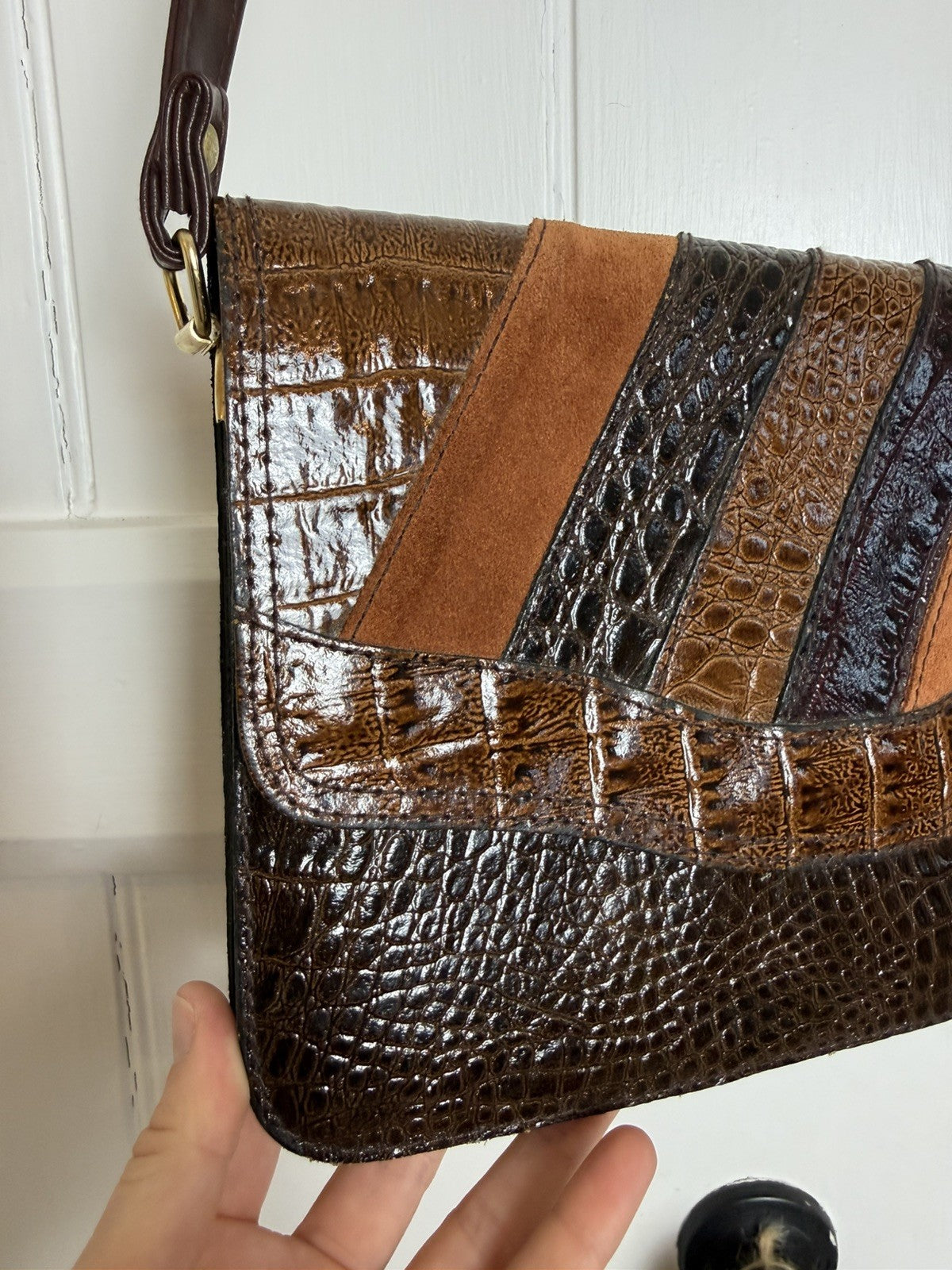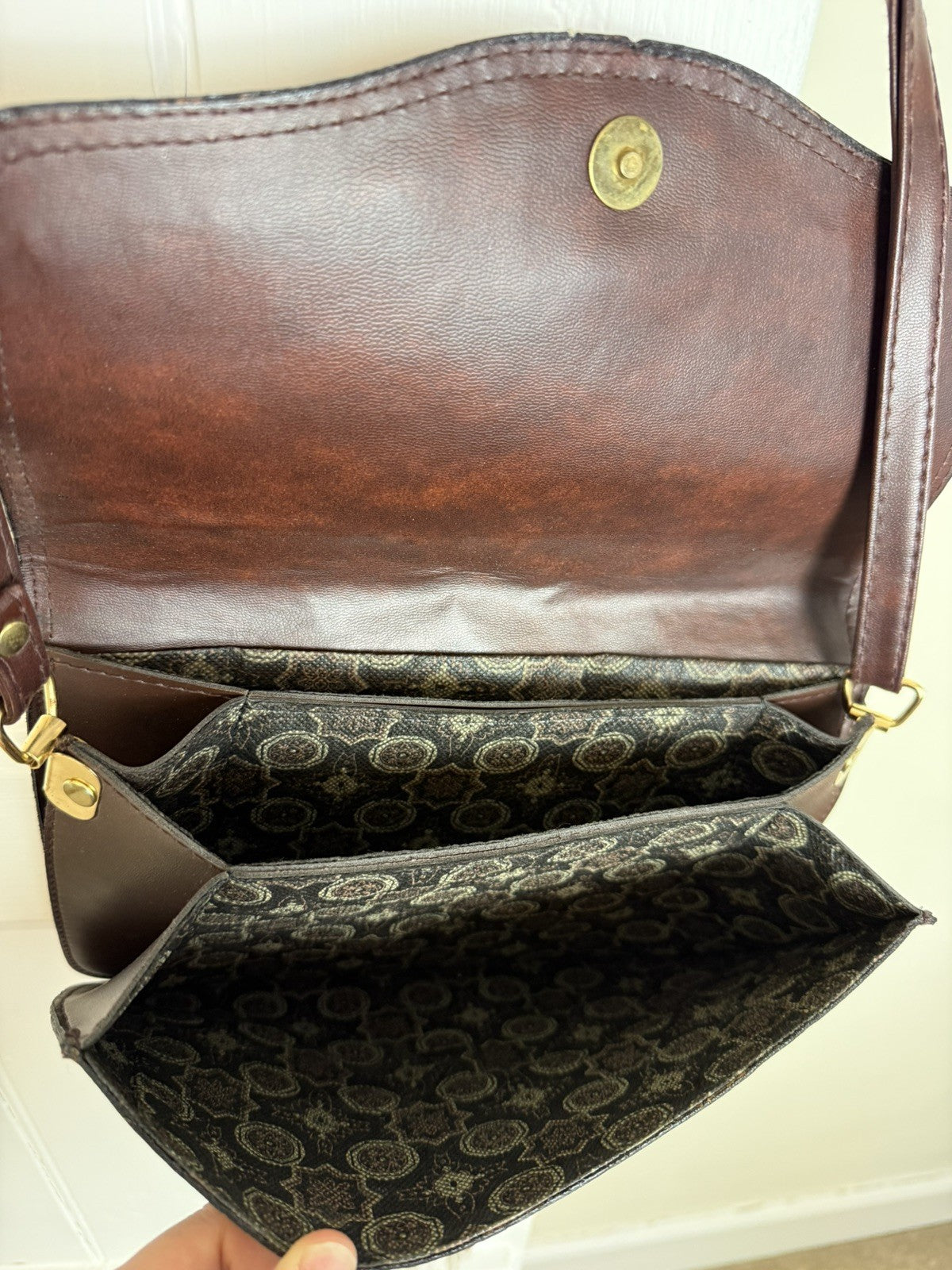 Super gorgeous vintage 80s brown genuine leather bag by La Toscana. Great classic quality bag perfect for everyday or occasions! Great contrast leathers pattern and lots of inner pockets.